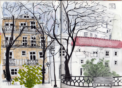 Lisboa enganou-se na estação do ano, e a 4 dias da véspera de Natal presenteou habitantes e visitantes com um calor de Primavera. Não desperdicei a oportunidade e fui desenhar na companhia do Sol.