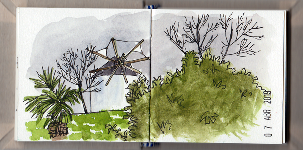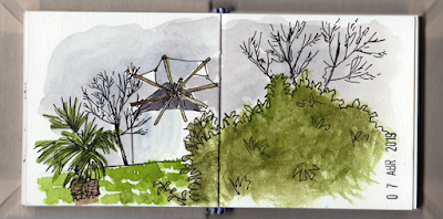 Desenhei dois locais que já desenhei tantas vezes e aos quais gosto sempre de voltar, o Cemitério dos Prazeres e o Parque Bensaúde.